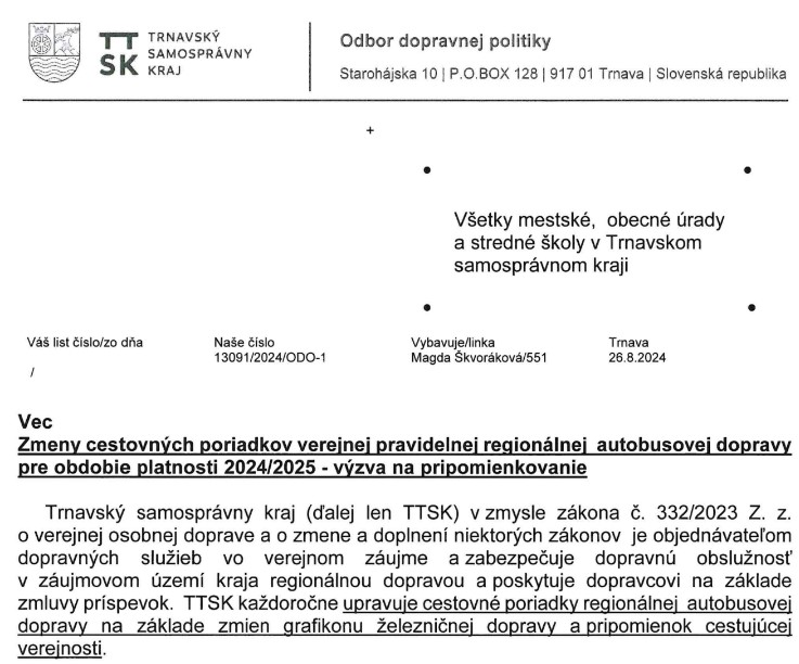 Výzva na pripomienkovanie Cestovného poriadku pre obdobie platnosti 2024/2025. Výzva na pripomienkovanie Cestovného poriadku pre obdobie platnosti 2024/2025. Ďalej »