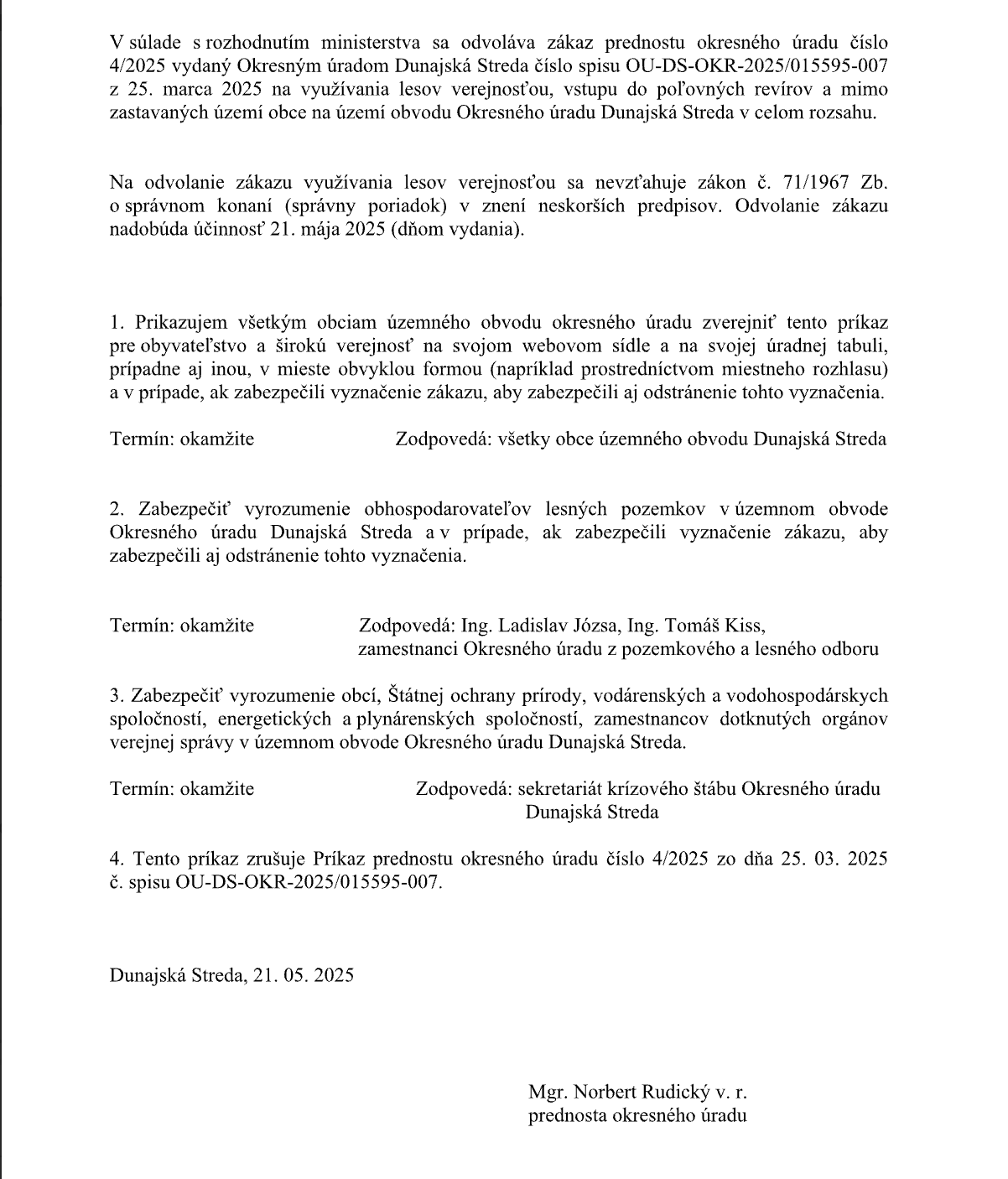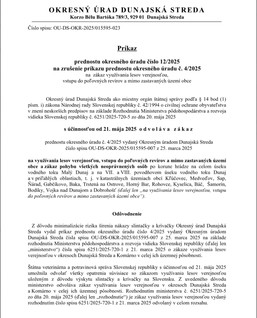 Príkaz prednostu okresného úradu číslo 12/2025